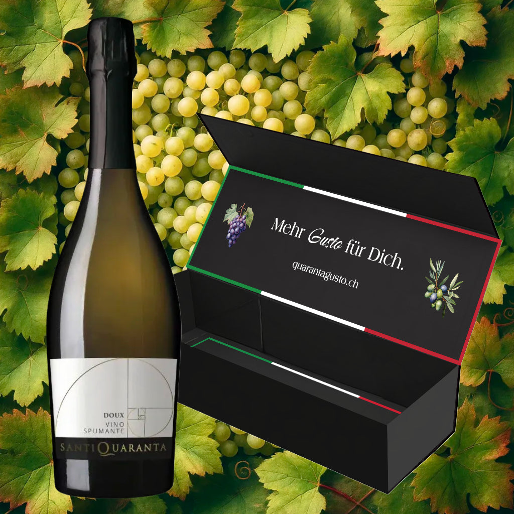 Ein verborgener Schatz Kampaniens: Dieser Moscato Spumante Doux wird aus der autochthonen Rebsorte Moscato Sannio di Baselice gewonnen, die einst bereits als ausgestorben galt. Santiquaranta ist das Meisterstück gelungen, die einzigartige Rebsorte aus dem Sannio wieder anzupflanzen. Die Doux-Edition des Spumante überzeugt mit toller Frucht und herrlich lieblichem Aroma, das zum Apéro jeden Gast garantiert überzeugt.